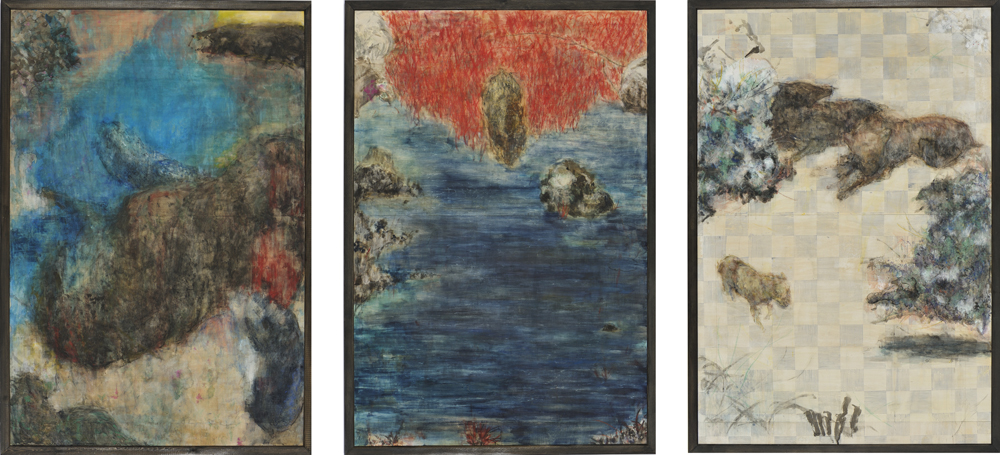 triptych 1939*1303*3pairs /2011 board, animal glue,mineral pigment, sumi ink,frame 板、膠彩、額